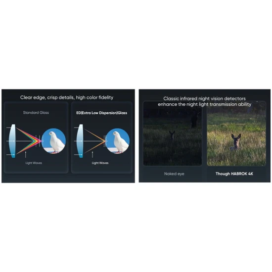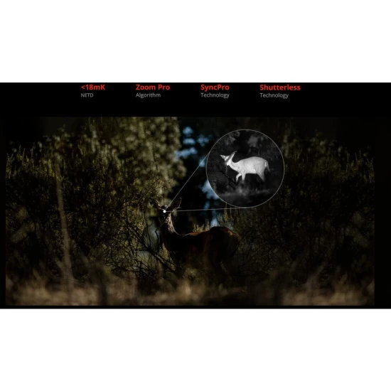 Echipat cu un detector termic performant si tehnologie shutterless, binoclul ofera o imagine fluida si detalii clare chiar si in conditii dificile precum ceata, vegetatie densa sau intuneric total. Senzorul CMOS 4K reda imagini vii si culori naturale, iar iluminatorul IR detasabil permite vizualizare clara pe timp de noapte, cu posibilitatea de alegere intre 850nm pentru distanta si 940nm pentru discretie.