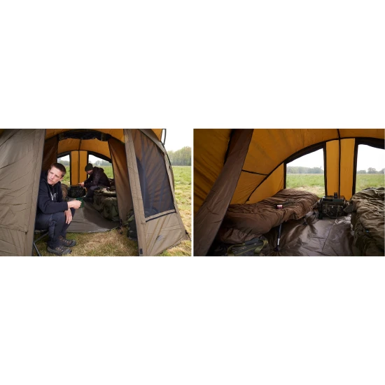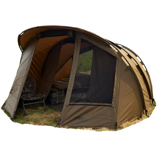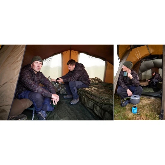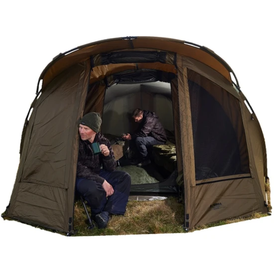 Cortul A Terra New Two Man este un model spatios conceput pentru doi pescari, oferind protectie eficienta impotriva ploii si soarelui si un antreu cu copertina pentru umbra sau depozitare. Inaltimea este de 160 cm, latimea de 301 cm si adancimea de 355 cm, iar greutatea de 15 kg face cortul suficient de robust pentru partide de pescuit prelungite. Materialul 210D este rezistent si durabil, iar coloana de apa de 10000 mm asigura protectie buna impotriva infiltrarii apei. Structura este sustinuta de nervuri din aluminiu de 19 mm si 4 tije telescopice, iar acoperisul este ranforsat pentru rezistenta sporita. Cusaturile sunt lipite si duble pentru o impermeabilitate mai buna, iar fermoarele sunt durabile. Cortul include podea robusta dintr-o singura bucata, ferestre cu plasa anti‑insecte si panouri de protectie, suporturi pentru lansete, balamale pentru usi, puncte de fixare pentru lampa, benzi elastice la punctele de prindere si stifturi rezistente pentru ancorare.