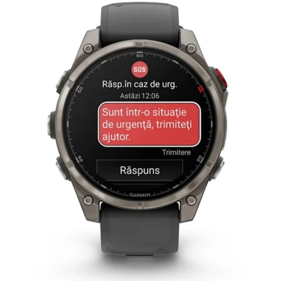 Fiind primul nostru ceas inteligent cu tehnologie inReach1 pentru conectivitate prin satelit si LTE, fēnix® 8 Pro iti ofera liniste sufleteasca in aventurile tale. Ai nevoie de ajutor? Declanseaza un mesaj SOS interactiv pentru sprijin in caz de urgenta de la centrul Garmin Response, disponibil non-stop.
