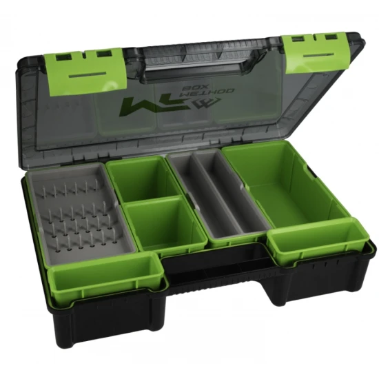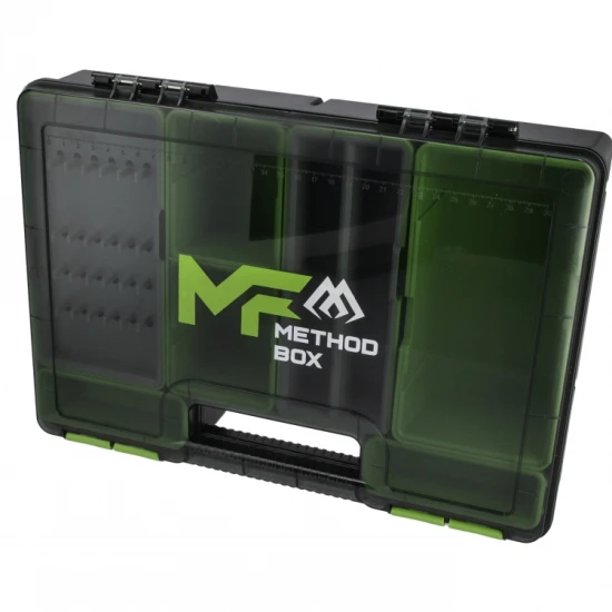 Method Box este o cutie excelenta pentru depozitarea accesoriilor pentru Method Feeder, Feeder Bomb sau Pellet Waggler. In interiorul cutiei gasiti o insertie pentru inaintasele pre-legate si un spatiu pentru feedere. Aceasta cutie poate depozita tot ce aveti nevoie pentru pescuitul la feeder.