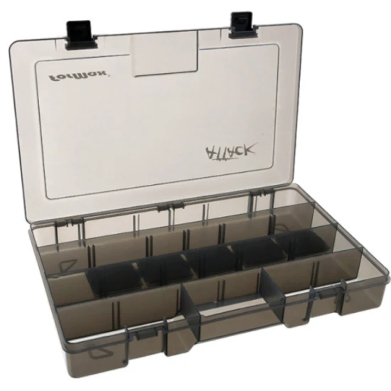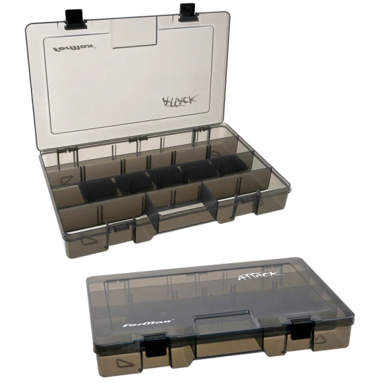 Cutia Formax Attack Plastic este un accesoriu practic si rezistent, conceput pentru depozitarea si organizarea nalucilor si a altor accesorii de pescuit. Realizata din plastic durabil, aceasta ofera protectie buna impotriva socurilor si uzurii, fiind potrivita pentru utilizare frecventa. Compartimentarea eficienta include mai multe spatii longitudinale si separatoare mobile, permitand organizarea personalizata a echipamentului in functie de dimensiunea si tipul accesoriilor.