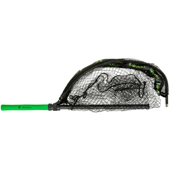 Minciogul Gunki Supersize Pike este un minciog conceput special pentru pescuitul rapitorilor mari, in mod particular pentru stiuca si alte specii de talie mare. Are capul minciogului cu dimensiunea de 60x70 cm si adancimea de 70 cm, oferind suficient spatiu pentru a sustine pestele in siguranta. Plasa este din material fara noduri cu acoperire PVC, ceea ce asigura uscare rapida, reduce sansele de incurcare a carligelor si este prietenoasa cu pestele. Ramele sunt realizate din aluminiu cu profil oval intarit, ceea ce confera stabilitate si durabilitate chiar si la capturile grele. Manerul are diametru mare si ofera o priza confortabila si control buna in timpul utilizarii. Sistemul de prindere a capului de minciog permite montare usoara si rapida, iar lungimea totala de 1.65m permite preluarea pestilor din apa fara a depune efort excesiv. Acest minciog este potrivit pentru pescuitul la mal sau din barca atunci cand tintesti specimene mari si vrei un echipament robust si eficient.