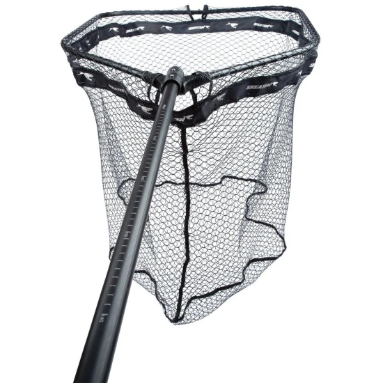 Pe lungimea sa, Skeater a gravat o scara de masurare precisa, care permite masurarea instantanee a capturilor direct in timpul partidei de pescuit fara a fi nevoie de instrumente suplimentare. Zona de prindere este acoperita cu spuma EVA ergonomica, ce ofera o aderenta excelenta, chiar si in conditii de umezeala sau temperaturi scazute. Pe suprafata sa este aplicat discret logo-ul Skeater, un detaliu elegant care confirma calitatea premium a produsului. Ofera protectie totala pentru peste capul minciogului fiind realizat dintr-o plasa fara noduri (knotless), acoperita cu un strat protector de cauciuc moale ( 20 mm Rubberized Hexamesh ). Aceasta constructie are mai multe avantaje esentiale: protejeaza solzii si mucusul pestelui, previne ranirea, reduce riscul de incurcare a carligelor, economisind timp la eliberarea nalucilor, permite scurgerea rapida a apei, pentru o manevrare eficienta si curate si rezista la uzura si abraziune, mentinand performantele un timp indelungat. Datorita acestei plase special concepute, Skeater Preda-Net este un instrument sigur pentru pescuitul responsabil si prietenos cu natura, ideal pentru pescarii care practica catch & release.