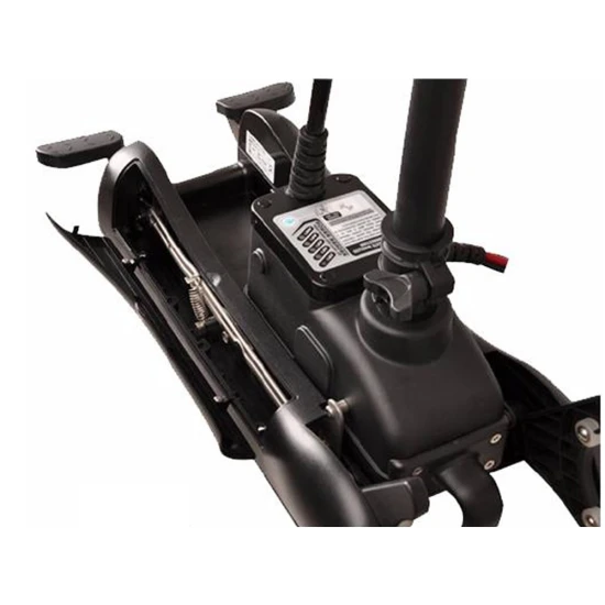 Pentru a lasa motorul la apa si pentru a-l ridica, acesta este dotat cu un sistem revolutionar de prindere, care poate fi operat cu maxima usurinta si minim de efort: pur si simplu apasam o pedala si motorul coboara in apa dupa care il ridica printr-o simpla apasare si acesta se blocheaza singur in pozita orizontala.