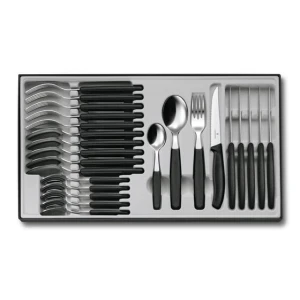 Set 24 Tacamuri 6 Persoane Victorinox, Swiss Modern Table Set, Lama Zimtata 12cm, Negru