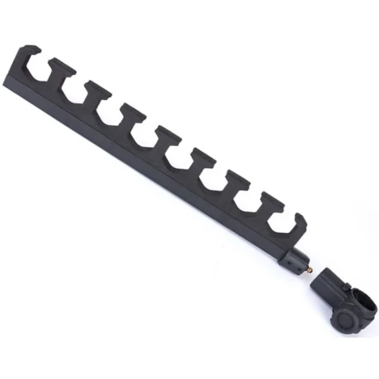 Acest suport (Roost Bar) este fabricat special pentru pescarii de stationar si feeder care vor sa-si organizeze eficient si in siguranta rubesienele sau tronsoanele de rezerva intr‑un mod accesibil si ordonat pe durata partidei. Modelul cu 8 posturi si lungimea de 47 cm ofera spatiul necesar pentru a tine pana la 8 seturi de kituri (sau tronsoane) in pozitie, astfel incat sa le ai la indemana fara a le lasa imprastiate pe sol sau amestecat.