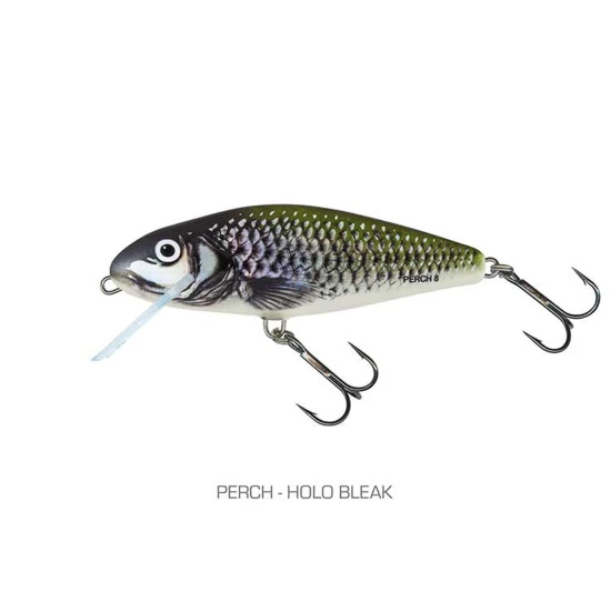 Creat pentru a atrage si a captura diferite tipuri de pesti rapitori in special stiuca, acest vobler se remarca prin forma sa inovatoare si prin detaliile atent lucrate. Salmo Perch are un corp compact si aerodinamic, perfectionat pentru a avea o evolutie rapida in masa apei in timpul recuperarilor si pentru a imita in mod eficient comportamentul hranirii pestilor vizati. Forma sa aerodinanica, permite voblerului sa obtina distante considerabile in laseuri. Acest vobler este echipat cu doua ancore triple de inalta calitate din otel inoxidabil, suficient de rezistente pentru a face fata dill-ului cu pestii de talie mare.